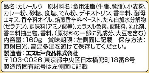 原材料:食用油脂(牛脂、豚脂)、小麦粉、カレー粉、砂糖、食塩、でん粉、デキストリン、香辛料、酵母エキス、香辛料オイル、焙煎香辛料ペースト、たん白加水分解物(ゼラチン)、調味料(アミノ酸等)、カラメル色素、酸味料、乳化剤、香辛料抽出物、香料、(原材料の一部に乳成分、大豆を含む)