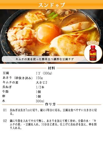 商品特徴:香り高く甘みが強い粗びき唐辛子と、刺激的な辛さがポイントの一味唐辛子を使用し、にんにく・みかん・りんご・生姜をたっぷりと使用した濃厚なキムチの素です。