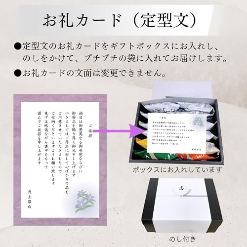 お礼カード(定型文)と白い手提げ袋(無地)がセットになっているので、届いてすぐにお渡しできます。