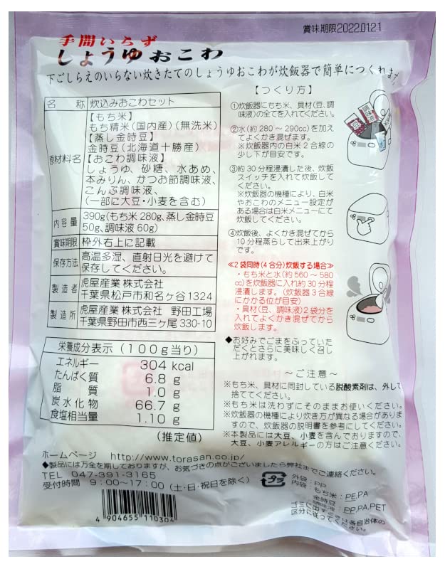 虎屋産業 手間いらずしょうゆおこわ 390g×5個