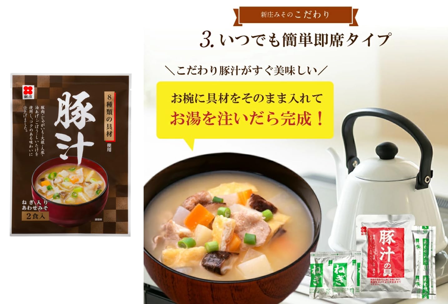 【20食】8種の具材が自慢の即席とん汁(2食入✕10個)【8種のレトルト具材とみその相性◎】 (お湯で溶くだけ/即席味噌汁/豚汁/新庄みそ)
