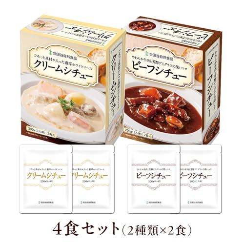 世田谷自然食品 シチュー2種セット 4食入 (2種 × 各2食 200g) 御歳暮 ビーフシチュー クリームシチュー レトルト 具だくさん 野菜 鶏肉 牛肉