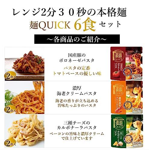 麺が入った麺QUICKパスタ カルボナーラ・ボロネーゼ・海老クリーム 3種×各2