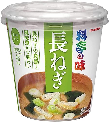 【長ねぎ】みそは信州赤系みそに豆みそをあわせました。だしはかつおだしと昆布だしで仕上げました。具は長ねぎと油あげの組み合わせです。