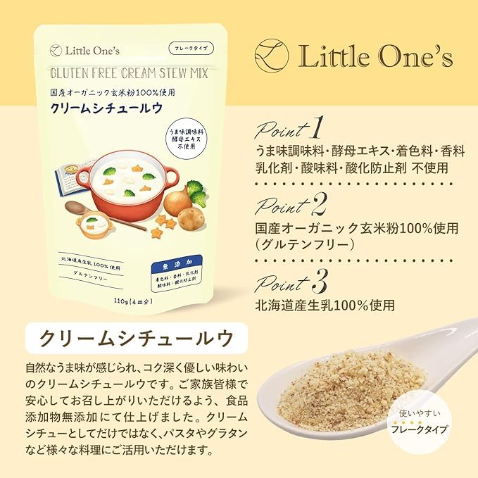 リトルワンズ 国産 オーガニック玄米粉100%使用 クリームシチュー ルウ 110g×6個 [ 無添加 グルテンフリー うま味調味料不使用 酵母エキス不使用 フレークタイプ ]
