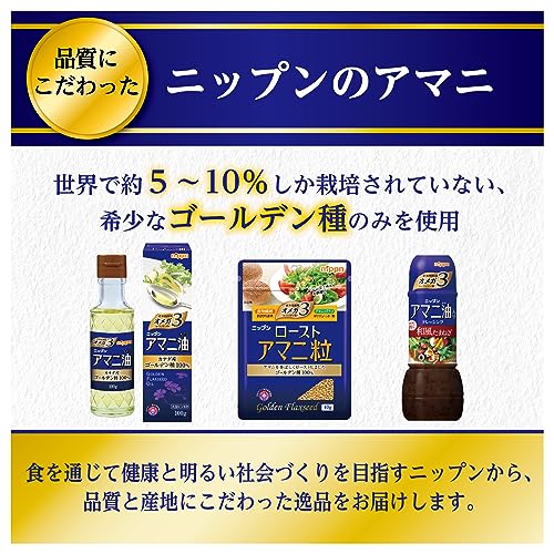 原材料:・アマニ油入りドレッシング和風たまねぎ/食用植物油脂(アマニ油、なたね油)、醤油、糖類(果糖ぶどう糖液糖、砂糖)、玉ねぎ、醸造酢、食塩、かつお節調味液、オニオンエキス、ガーリックパウダー、からし粉、乾燥赤ピーマン / 調味料(アミノ酸等)、増粘剤(キサンタンガム)、着色料(ウコン)、(一部に小麦・大豆に含む) ・アマニ油入りドレッシングごま/食用植物油脂(アマニ油、なたね油、ごま油)、糖類(果糖ぶどう糖液糖、砂糖)、醤油、醸造酢、ごま、加塩卵黄(卵黄、食塩)、食塩、ねりごま、かつお節調味液 / 調味料(アミノ酸等)、香料、増粘剤(キサンタンガム)、(一部に小麦・卵・ごま・大豆・鶏肉を含む) ・アマニ油入りドレッシングシーザーサラダ/食用植物油脂(なたね油、アマニ油)、糖類(果糖ぶどう糖液糖、砂糖)、醸造酢、食塩、チーズ、加塩卵黄(卵黄、食塩)、チーズフード、ベーコン風味調味料、ガーリックペースト、こしょう、たん白加水分解物、からし粉 / 調味料(アミノ酸等)、増粘剤(キサンタンガム)、くん液、甘味料(ステビア)、着色料(カロチノイド)、香料、(一部に卵・乳成分・豚肉を含む) ・マニ油入りドレッシング 黒酢たまねぎ/食用植物油脂(なたね油、アマニ油)、醸造酢、糖類(果糖ぶどう糖液糖、砂糖)、醤油、食塩、乾燥玉ねぎ、発酵調味液、酵母エキスパウダー / 調味料(アミノ酸)、増粘剤(キサンタンガム)、(一部に小麦・大豆を含む)