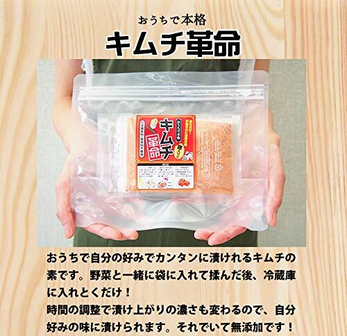 【キムチ革命内容:(キムチパウダー60g×2袋・唐辛子パウダー)・漬け込み袋・匂いもれ防止パックつき】×2個セット・作る分量は、野菜の量に合わせて加減くださいませ。 目安は野菜100gに対し無添加キムチパウダー10gです。 オススメは一度に200gほどの野菜に20gのキムチパウダーでお作りいただくのが理想です。 本品は60gで約1200gのキムチができます。。