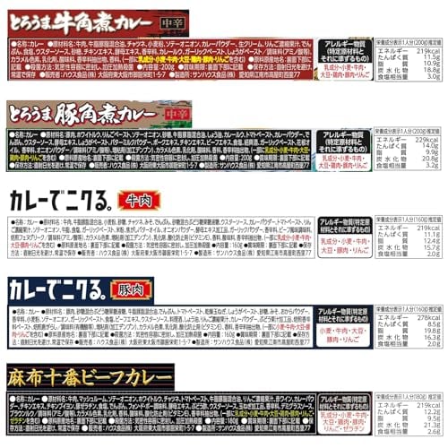 【,限定】ハウス 厳選こだわりレトルトカレー5種8食ストック用BOX付きセット(とろうま牛角煮/とろうま豚角煮/麻布十番特製デミグラスソース/カレーでニクる。牛/豚)【セット買い】【レンジ調理対応】【レトルト食品】【非常食】【ギフト】※季節により商品変更有り