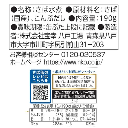宝幸 日本のさば水煮 食塩不使用 昆布だし使用 190g×24缶 190グラム (x 24)