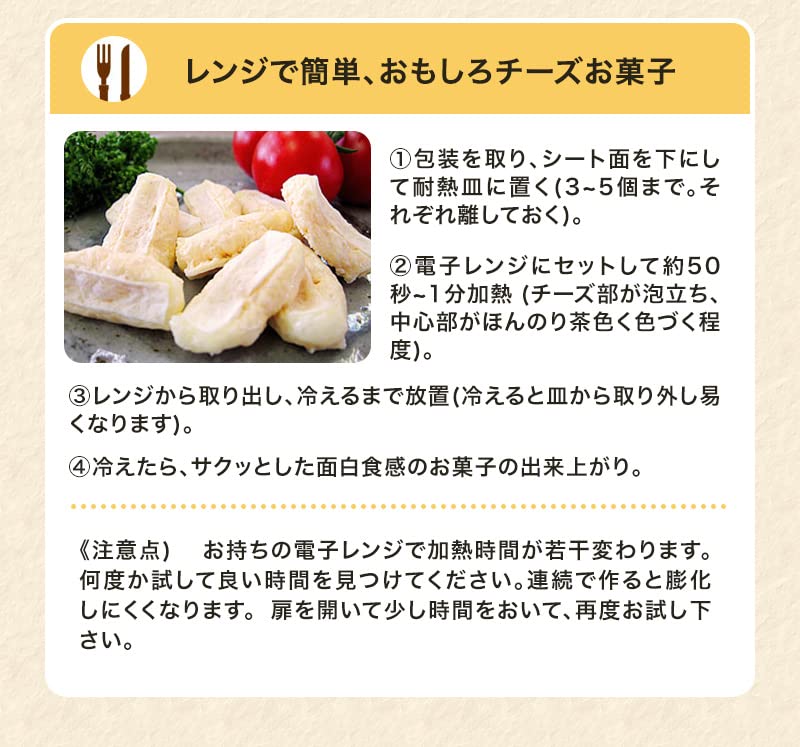 人気のカマンベールを配合した濃厚な味わいを楽しめるチーズです。鱈から作ったシートで挟むことで、チーズの味を引き立て、一度たべるとやみつきになる美味しさです。個包装となっておりますので持ち運びに便利な商品となっております。