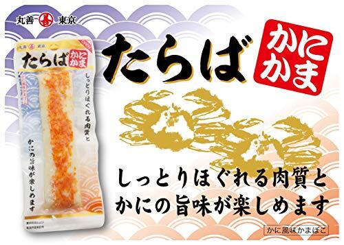 原材料:たら、でん粉、食塩、醸造調味料、かにエキス、卵白、還元水あめ、植物油脂、植物性たん白、加工デンプン、トレハロース、調味料(アミノ酸等)、セルロース、レシチン、香料、着色料(パプリカ色素、トマト色素)、(原材料の一部にえび、小麦、いか、大豆を含む)