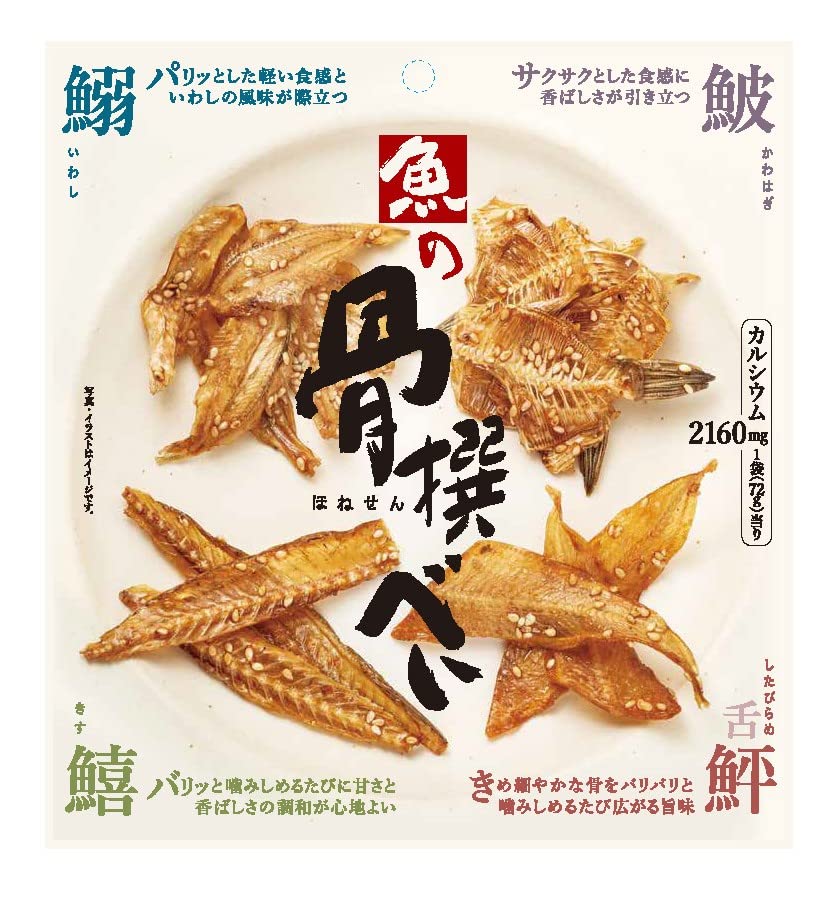 原材料:いわし(輸入)、舌びらめ、かわはぎ、きす骨、砂糖、でん粉分解物、発酵調味料、醬油、いりごま、ちりめんエキス、酵母エキス、香辛料/トレハロース、調味料(アミノ酸)、(一部に小麦・ごま・大豆を含む)