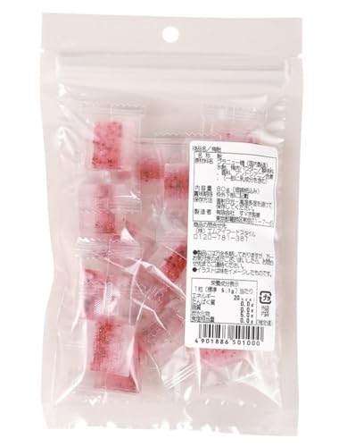 原材料:グラニュー糖(国内製造)、水飴、梅肉パウダー/酸味料、香料、アントシアニン色素、(一部に乳製分を含む)