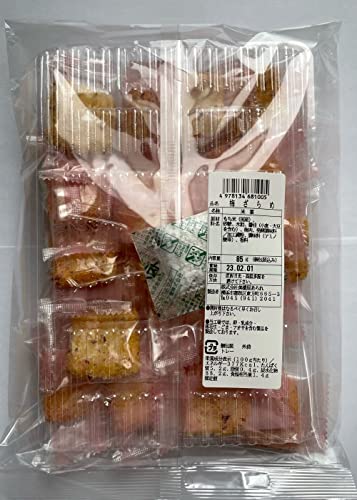 原材料:もち米(国産)、砂糖、水飴、醤油(小麦・大豆を含む)、梅肉、発酵調味料/調味料(アミノ酸等)、香料