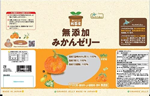 原材料:含蜜糖(てん菜(北海道産、遺伝子組み換えでない))、みかん濃縮果汁(みかん(国産))、レモン果汁(国産)、寒天(海藻(国産))、こんにゃく粉(こんにゃく芋(国産))