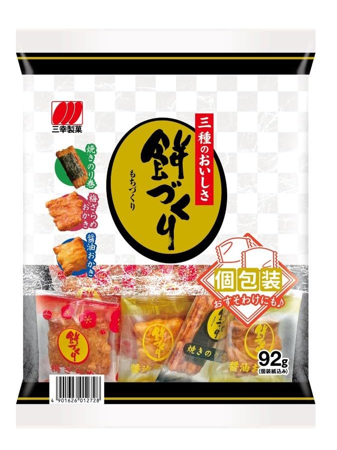 原材料:米(中国産)、しょうゆ(小麦・大豆を含む)、砂糖、デキストリン、海苔、かつお節エキス、梅ペースト、食塩、シソエキス、酵母エキス、唐辛子、昆布エキス、植物油脂(大豆を含む)/調味料(アミノ酸等)、香料、酸味料、加工でん粉、着色料(カラメル、パプリカ色素、アントシアニン)、糊料(キサンタンガム、プルラン)