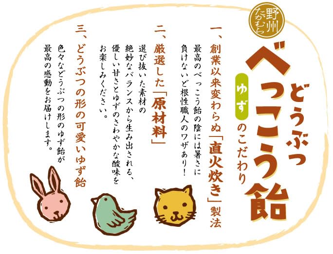 【セット売り】 野州たかむら どうぶつ べっこう飴 国産 キャンディ 計6袋 (各々2袋セット, プレーン、ゆず、さくら)