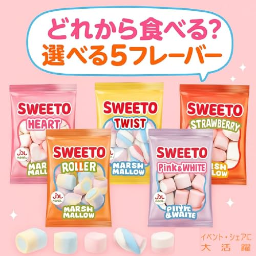 SWEETO マシュマロ アソート 5種×各2袋 合計10袋セット (ハート・ツイスト・ローラー・ピンク&ホワイト・ストロベリー 各2袋) 詰め合わせ カラフル おしゃれ 個包装 ギフト 可愛い