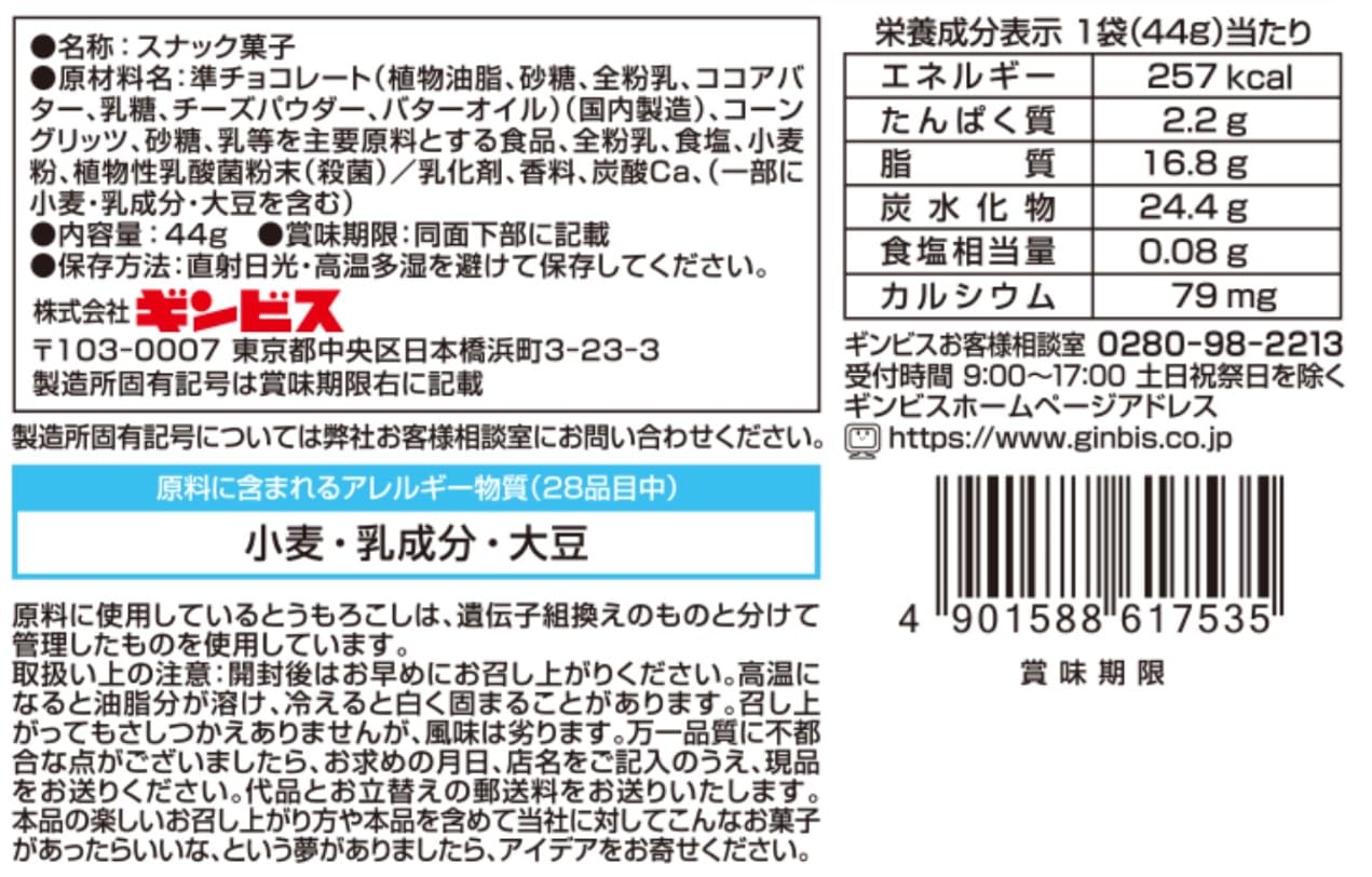 ギンビス そのままでも牛乳をかけてもおいしいしみチョココーンホワイトミルク味 44g×10袋