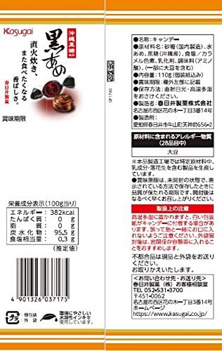 原材料:砂糖(国内製造)、水あめ、黒糖(沖縄産)、食塩/カラメル色素、乳化剤、調味料(アミノ酸)、(一部に大豆を含む)