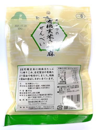 国内産有機玄米100%使用 白胡麻の風味豊かで、サクッとした食感