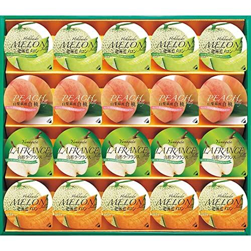 内容●北海道赤肉メロンゼリー52g×5、北海道青肉メロンゼリー52g×5、山梨県産白桃ゼリー52g×5、山形ラ・フランスゼリー52g×5