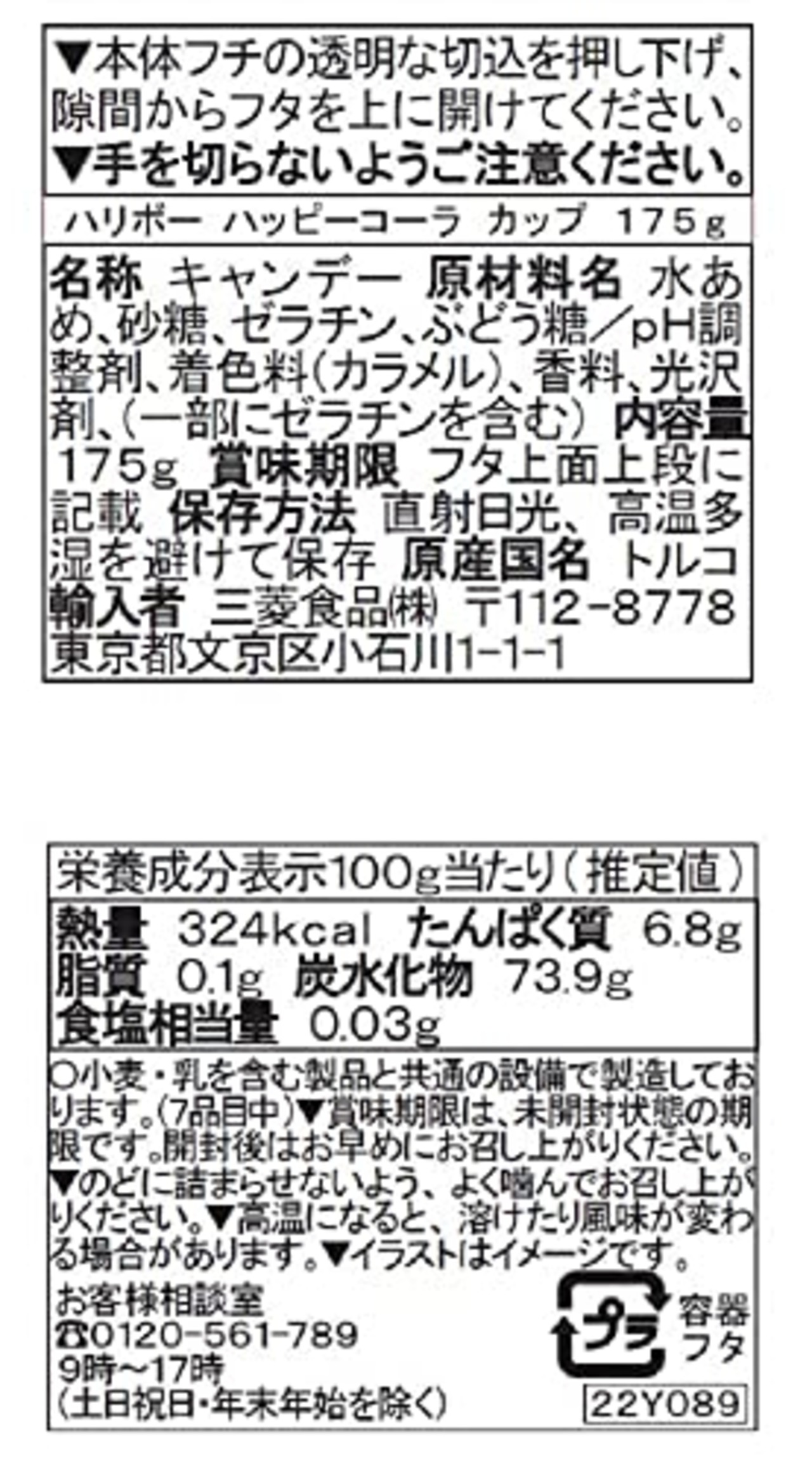 Haribo ハリボー ハッピーコーラ カップ 175g ×3個