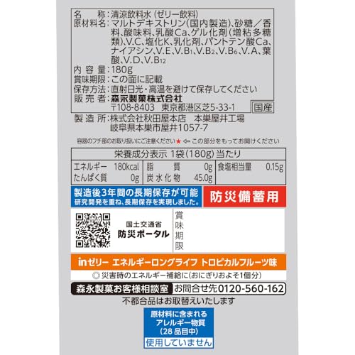 inゼリー エネルギーロングライフ (180g×6個) もしも 備え 長期保存 防災 備蓄 非常食 inゼリー 森永製菓