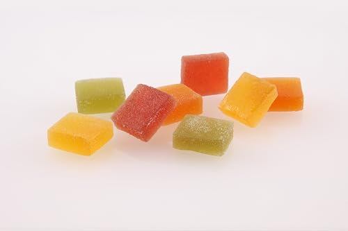 いちご・青りんご・パイン・オレンジのフルーツピューレを使い、フルーツそのものの自然の風味を生かしたドライゼリー。柔らかい食感で食べやすく、爽やかな口当たりが特徴です。