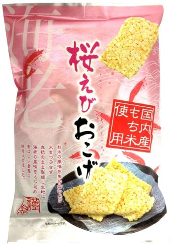 原材料:もち米(国内産)・植物油脂・桜えび・エビパウダー・食塩・ぶどう糖・粉末醤油・香辛料・調味料(アミノ酸等)(原材料の一部に小麦を含む)