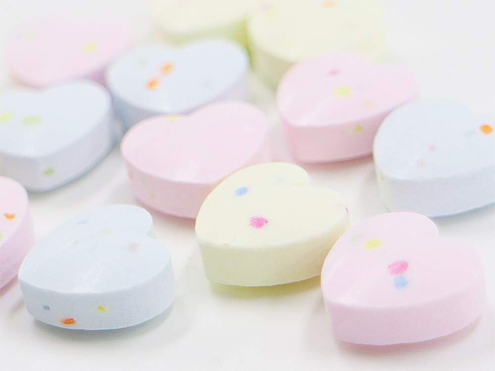 ミンツ入りのハート型 3つの味のミックスラムネ