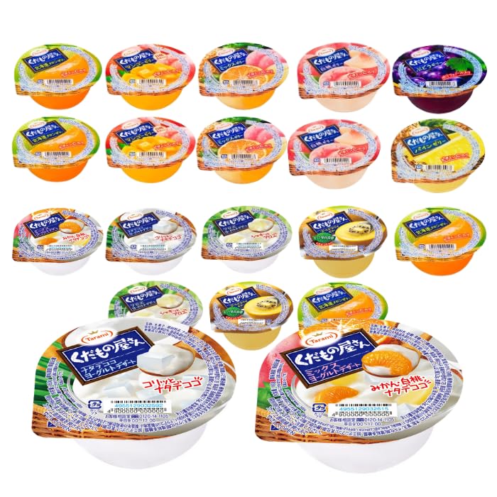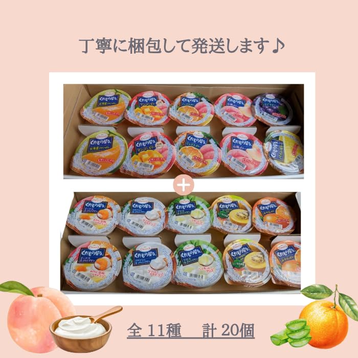 みかん / 桃 / マンゴーゼリー / ミックスゼリー / ゴールドキウイゼリー / みかんヨーグルト / ナタデココヨーグルト / アロエヨーグルト / 2個ずつ パイン / ぶどう のみ 1個ずつ 計,20個入り