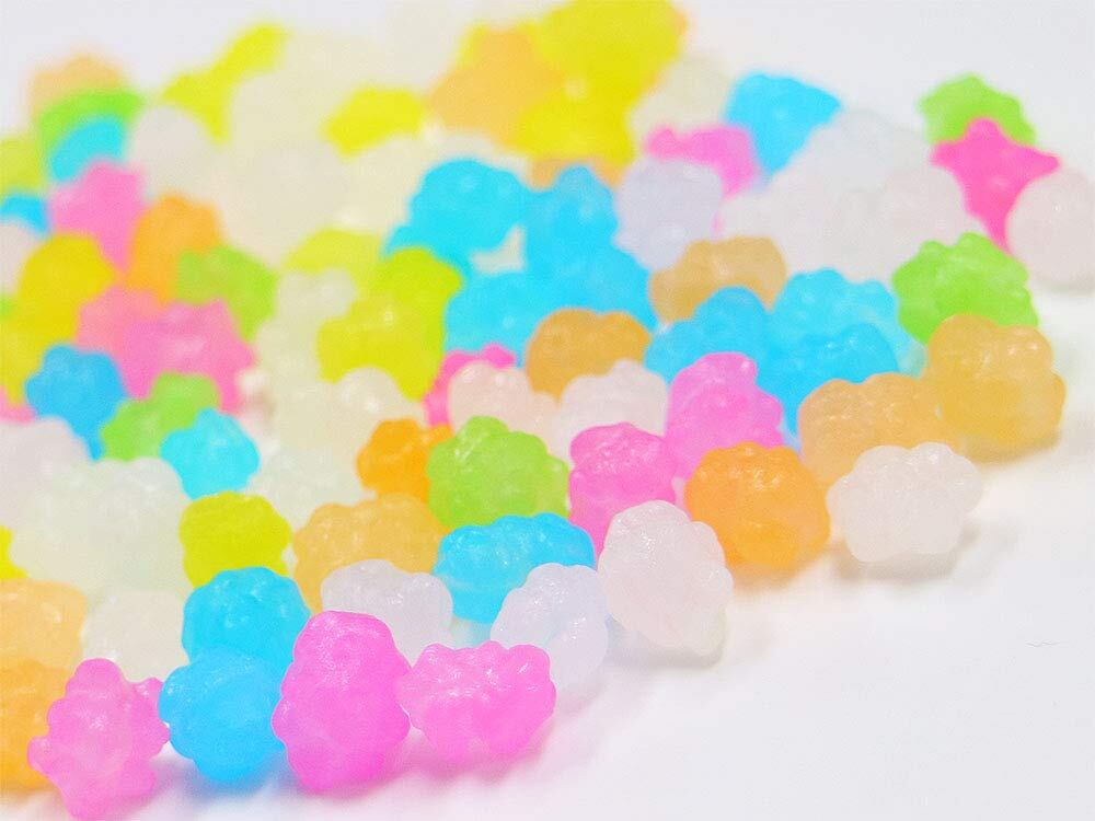 原材料:グラニュー糖、甘しょ澱粉/着色料(黄4、赤3、青1)