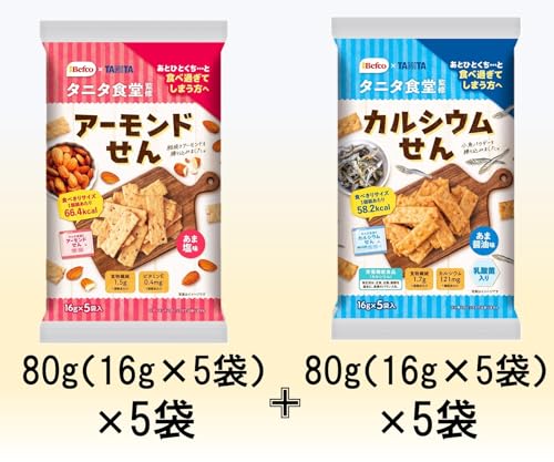 栗山米菓 タニタ 食堂監修のおせんべい 80g×10袋セット (アーモンド5袋・カルシウム5袋) 食べ比べ アソート