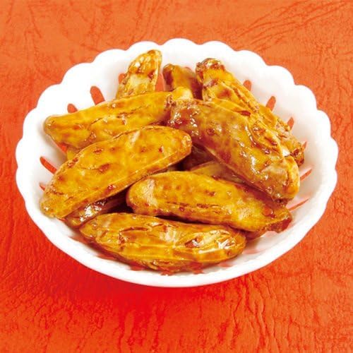 でん粉(国内製造)、米(国産)、醤油、砂糖、でん粉分解物、唐辛子、食塩/加工デンプン、カラメル色素、調味料(アミノ酸等)、紅麹色素、乳化剤、甘味料(アセスルファムカリウム)、(一部に小麦・大豆を含む)