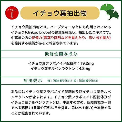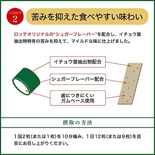 原材料:マルチトール、イチョウ葉抽出物/ガムベース、甘味料(キシリトール、アスパルテーム・L-フェニルアラニン化合物)、香料、増粘剤(アラビアガム)、光沢剤、着色料(紅花黄、クチナシ)