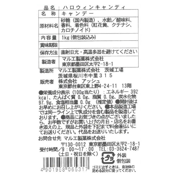 ハロウィン キャンディ 2kg(個包装 約460個) 3種の味 オレンジ サイダー パイナップル 飴 あめ キャンデー 1kg×2