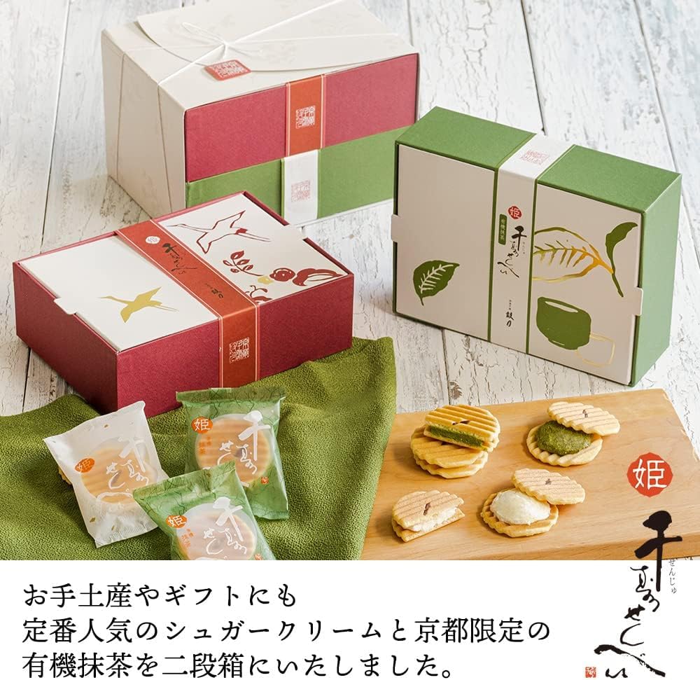 鼓月 姫千寿せんべい 二段箱(シュガークリーム,有機抹茶 各12枚入)/お歳暮 秋ギフト 京都 和菓子 ギフト お礼 お祝い お返し お供え