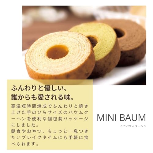 1つずつ個包装された一口サイズのミニバウムクーヘンのお菓子詰め合わせセットです。 賞味期限:45日~90日