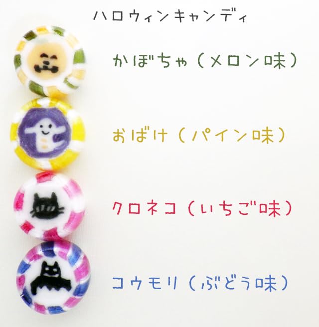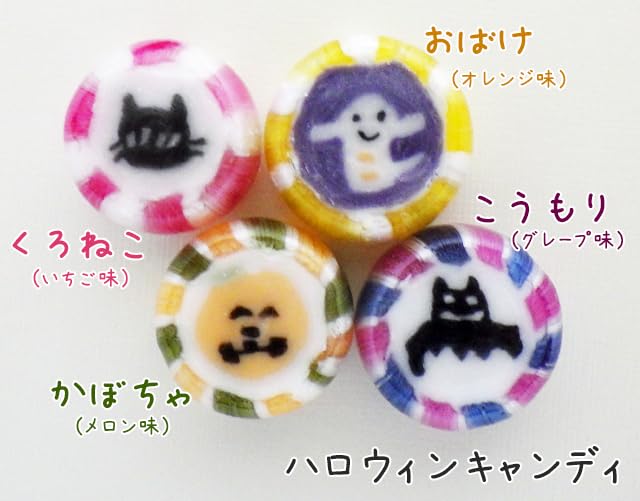 カボチャ、オバケ、クロネコ、コウモリの4種ミックス(4種均等には入っていません。)