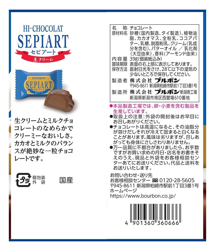 原材料砂糖(国内製造、タイ製造)、植物油脂、カカオマス、全粉乳、ココアバター、乳糖、脱脂粉乳、クリーム(乳成分を含む)、バターオイル / 乳化剤(大豆由来)、香料(アーモンド由来)