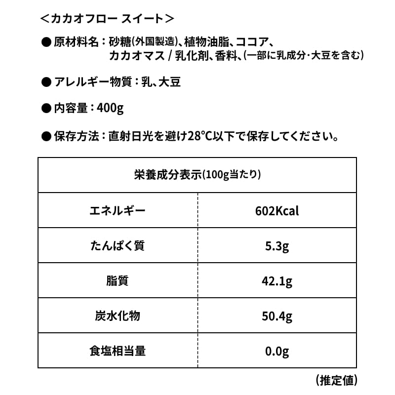 カカオフロー スイート チョコ 400g チョコレート 大容量 業務用 ギフト 詰め合わせ カカオ お菓子 おやつ ソヤファームクラブ 不二製油