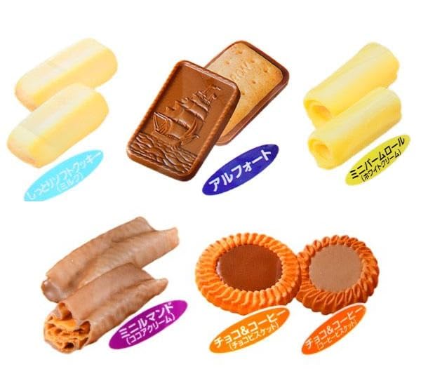 バラエティーアソート:しっとりソフトクッキー(ミルク)、アルフォート、ミニバームロール(ホワイトクリーム)、ミニルマンド(ココアクリーム)、チョコ&コーヒー(チョコビスケット、コーヒービスケット)を詰合せました。ご家族のおくつろぎのひとときに、お客様のおもてなしにどうぞお召しあがりください。
