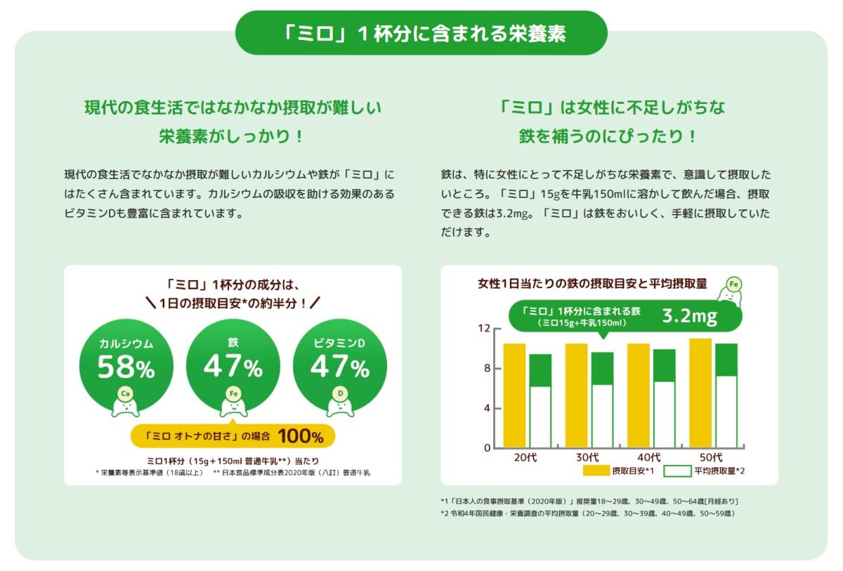 原材料:砂糖、植物油脂、脱脂粉乳、混合大麦麦芽エキス、ココアパウダー、ホエイパウダー、でん粉/乳化剤(大豆由来)、リン酸ナトリウム、香料
