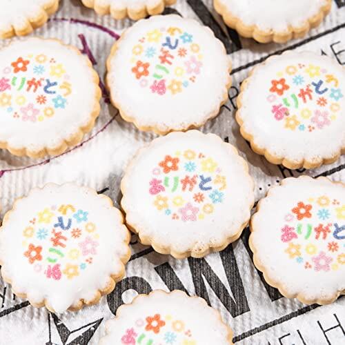 花型のプチクッキーのアイシング部分にデザインプリントしてつくったお菓子。