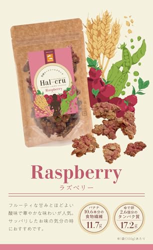 【腸活 サプリメントスナック】Hal-cru(ハルクル)[ラズベリー]フルーティな甘みと酸味 発酵オートミールクランチ 100g入り×2袋 グルテンフリー お菓子で美腸活 低GI ザクザク食感[食物繊維 麹 甜菜オリゴ糖 発酵えんどう豆プロテイン オーガニックメープルシロップを使用/人工甘味料不使用] グラノーラおやつ