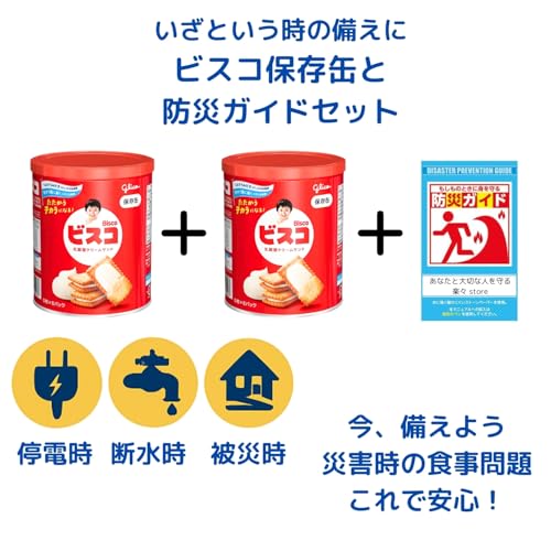 【2個セット】ビスコ 保存缶(5年保存可)×2缶 防災ガイド付き 保存 非常用食料 災害 防災 地震 安否確認 ロングライフ 備蓄 ビスケット <賞味期限5年>
