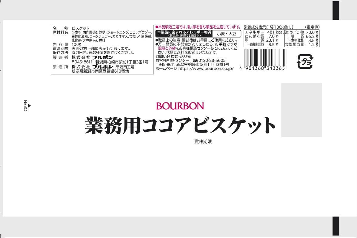ブルボン 業務用ココアビスケット 100g×14袋