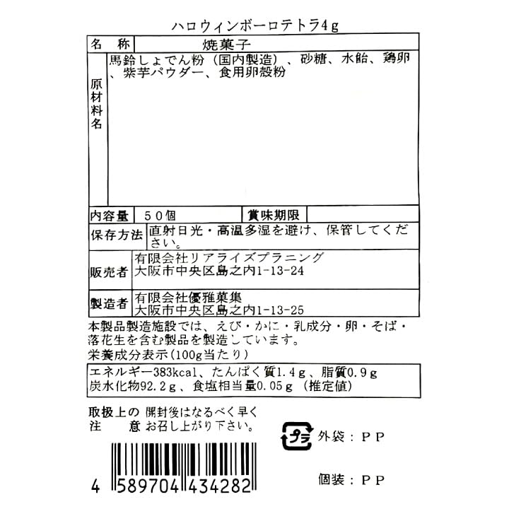ハロウィン ボーロ テトラ 和風 個包装 50個入り むらさきいもボーロ