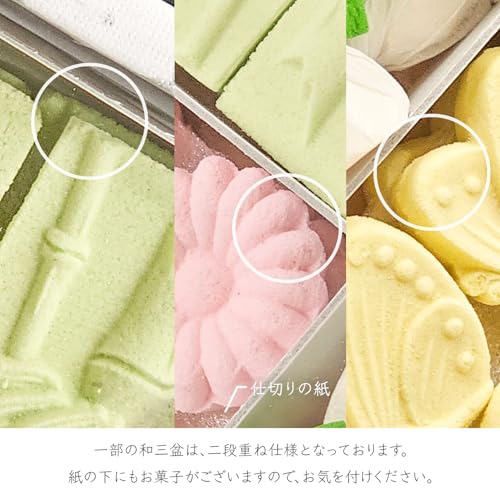 蓋と分けて包装されています。蓋を開け、お菓子が見えるように飾ることもできます。 そのため、神棚やお仏壇へのお供えや、新年のお祝い飾りとしてもお使いいただけます。